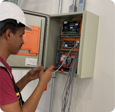 Oferecemos serviços de instalação e manutenção de interfones, garantindo soluções eficientes para a comunicação interna e a segurança do seu condomínio. Conte com nossa expertise para conectar moradores com qualidade e confiabilidade!
